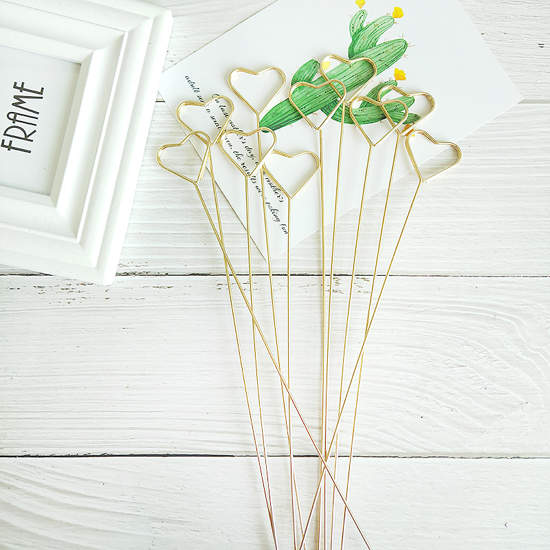 Card Holder Sticks- Metal, Heart Shape-Pack of 10