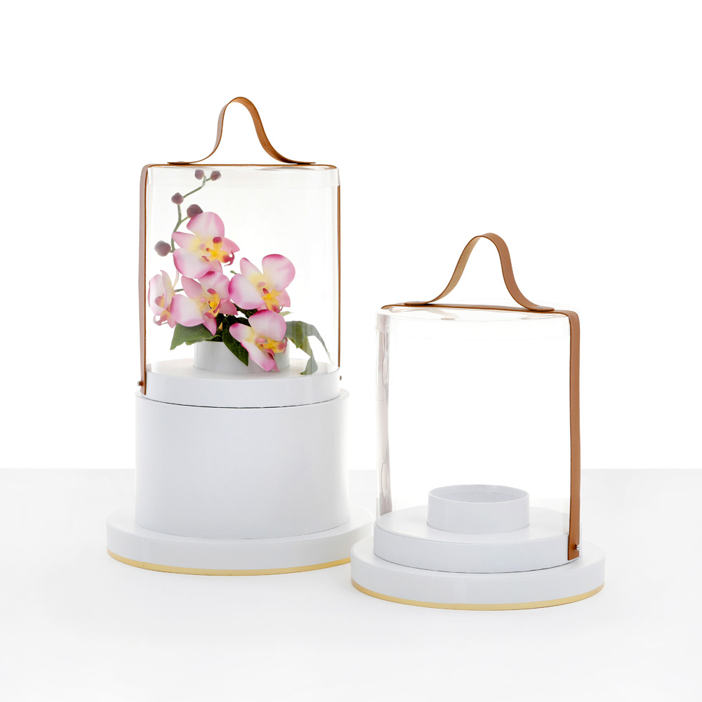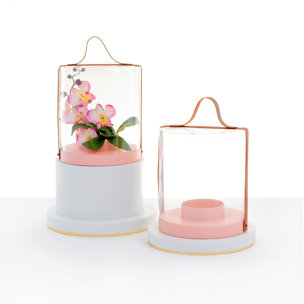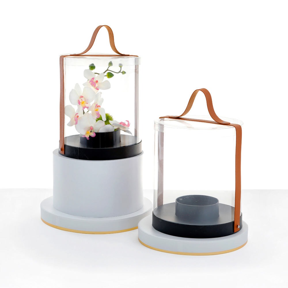 - Cylinder Box with Plastic Clear Walls and Brown Eco Leather Handle, Various Colors