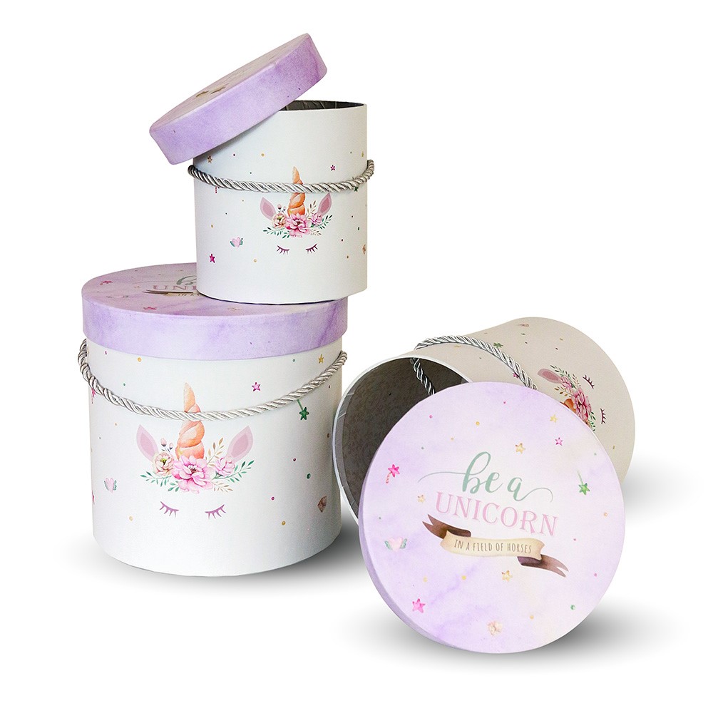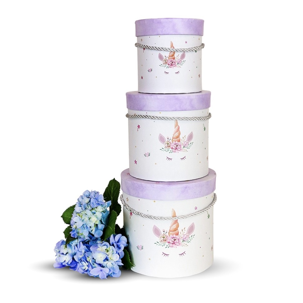 Premium Quality Round Floral Box, Flower Gift Box, Set of 3 pcs, with Lids, Unicorn Theme