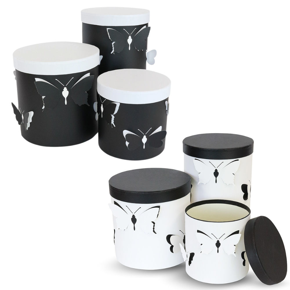 - Premium Quality Set of 3, Round Flower/Gift Boxes with 3D Butterflies | W7642