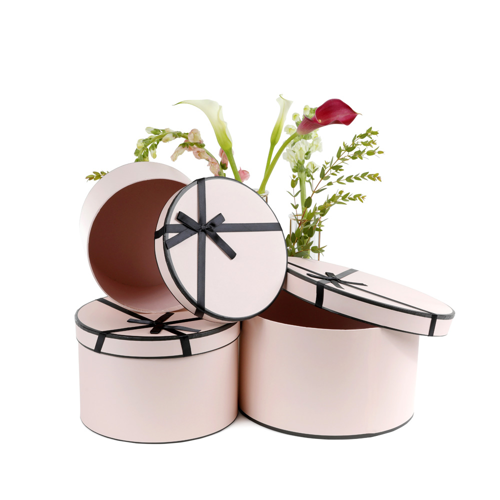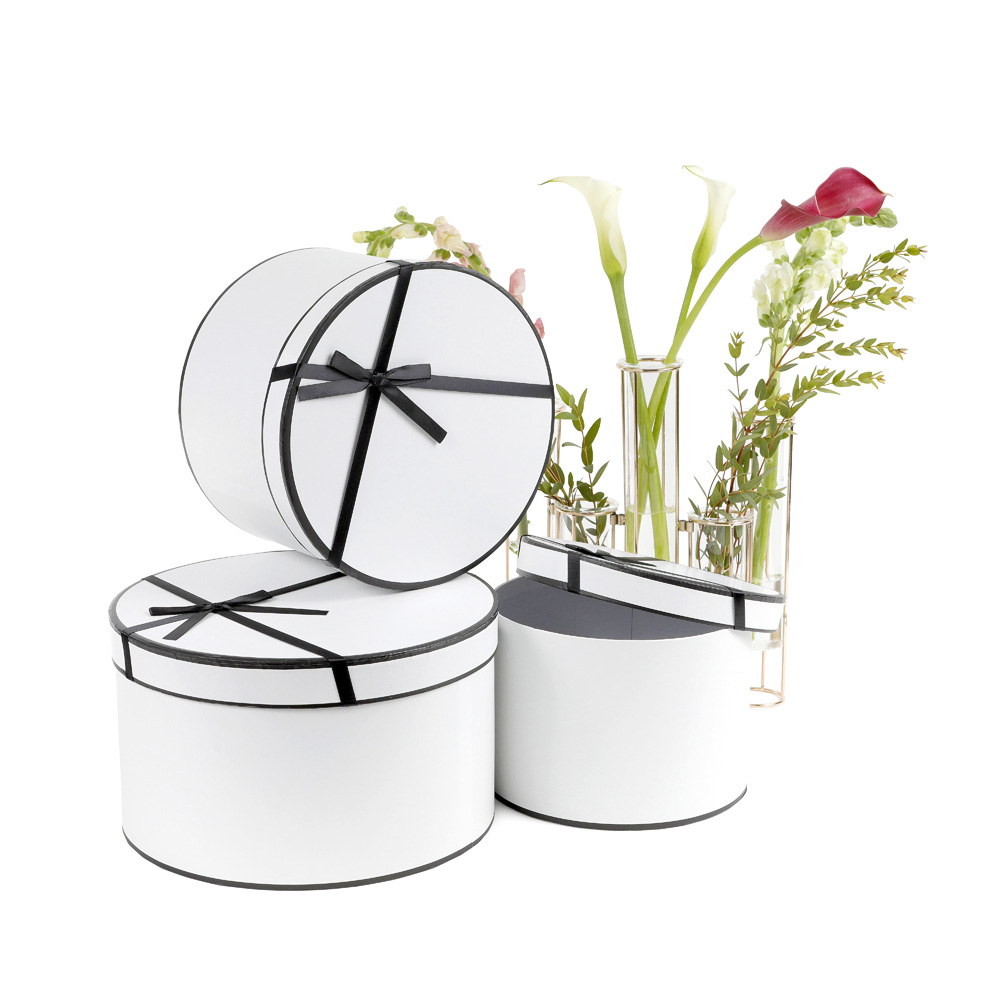 Set of 3 Round Flower/Gift Boxes with Bow Detail, Premium Quality, For Luxury Arrangements, Various Colors