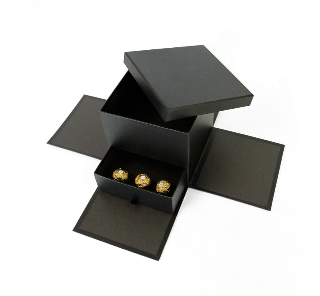 - Premium Quality Square Surprise Floral Box, Black