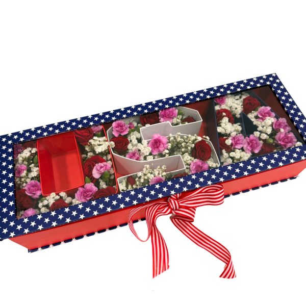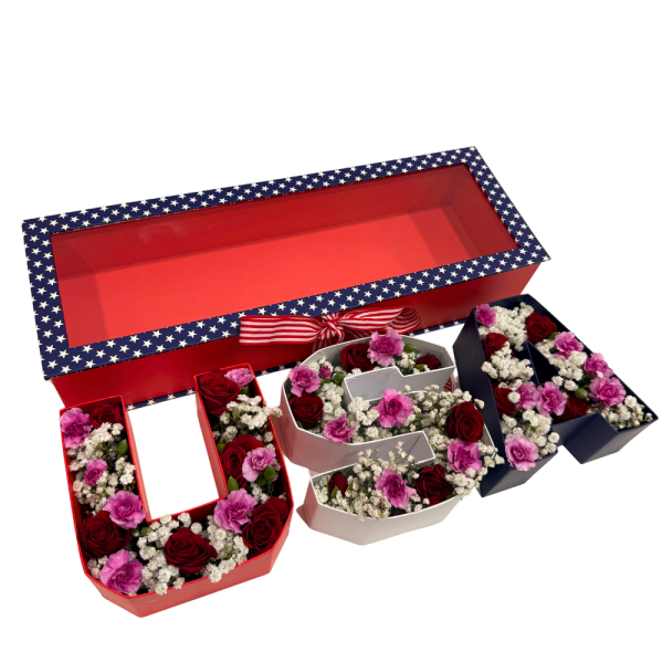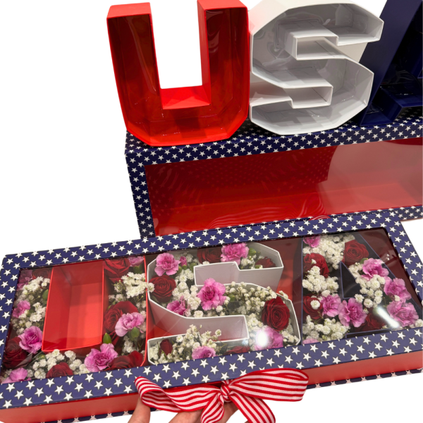 Show your patriotic pride or commemorate special occasions with this beautifully crafted USA Letter-Shaped Flower Gift Box. Designed with high-quality materials, this versatile floral box allows you to create stunning floral arrangements, candy displays, or thoughtful gift sets. Removable letters provide flexibility, making it suitable for events like 4th of July, Veterans Day, Memorial Day, Citizenship Celebrations, or as a thoughtful gift for someone special.