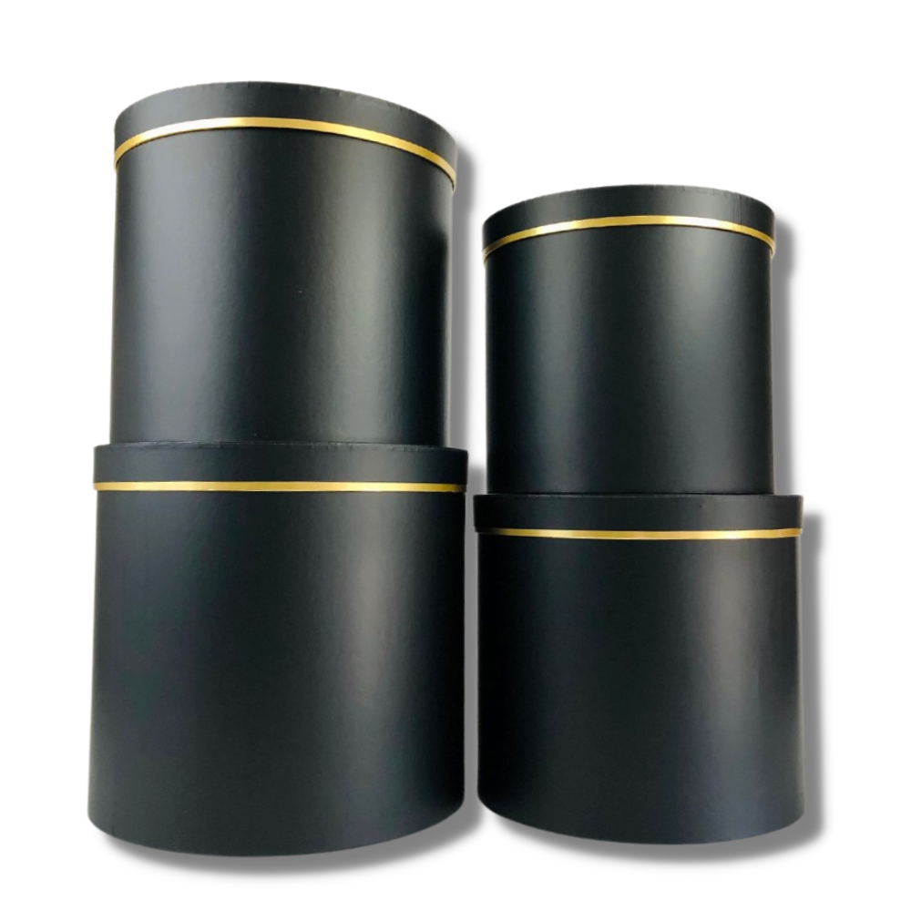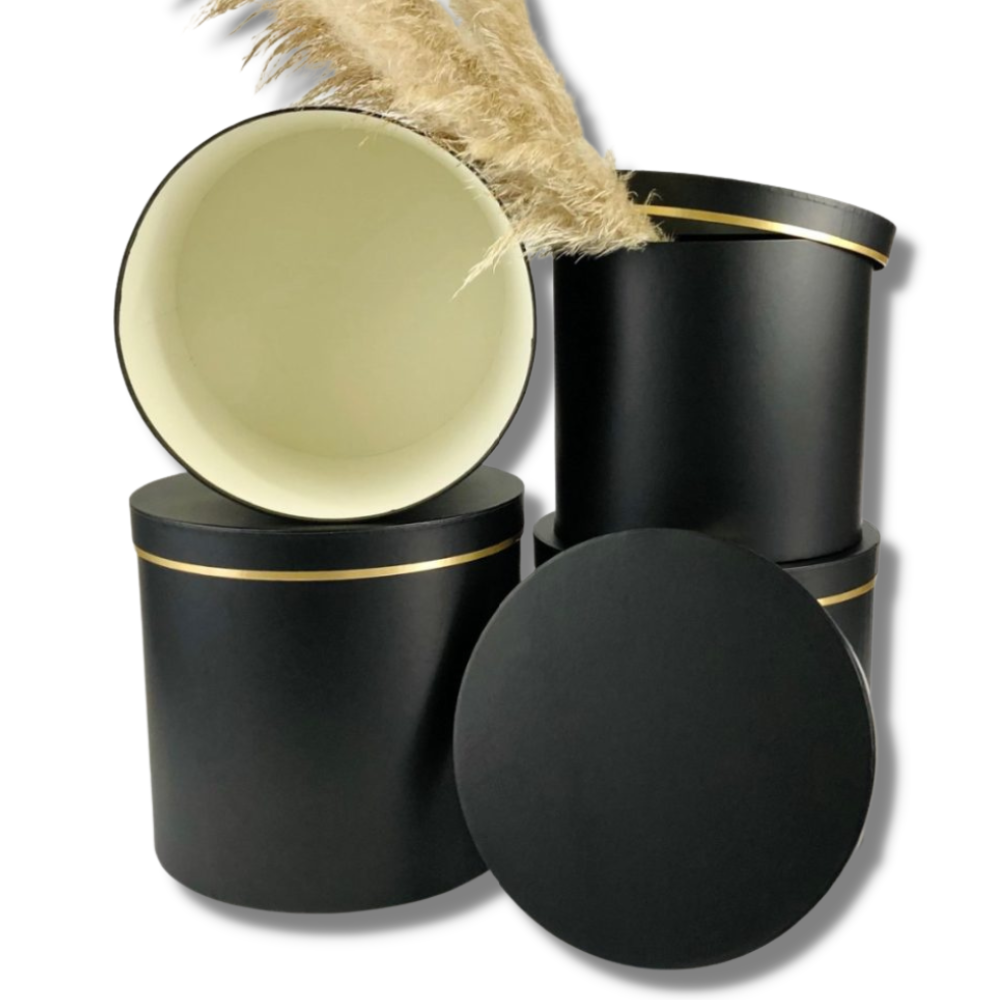 Premium Quality XXL Size Boxes, Set of 4 pcs, with Lids, Black with Golden Rim